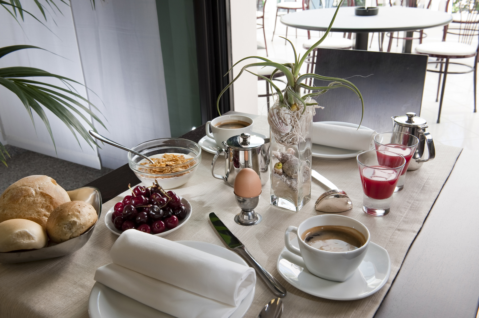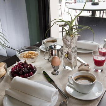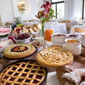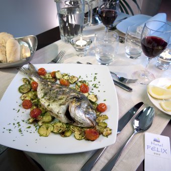 reichhaltigem Frühstück bis hin zum Mittag- und Abendessen, mit dem Vergnügen jeden Tag Fischgerichte zu genießen, mit den Beilagen aus unserem großzügigem Buffet.